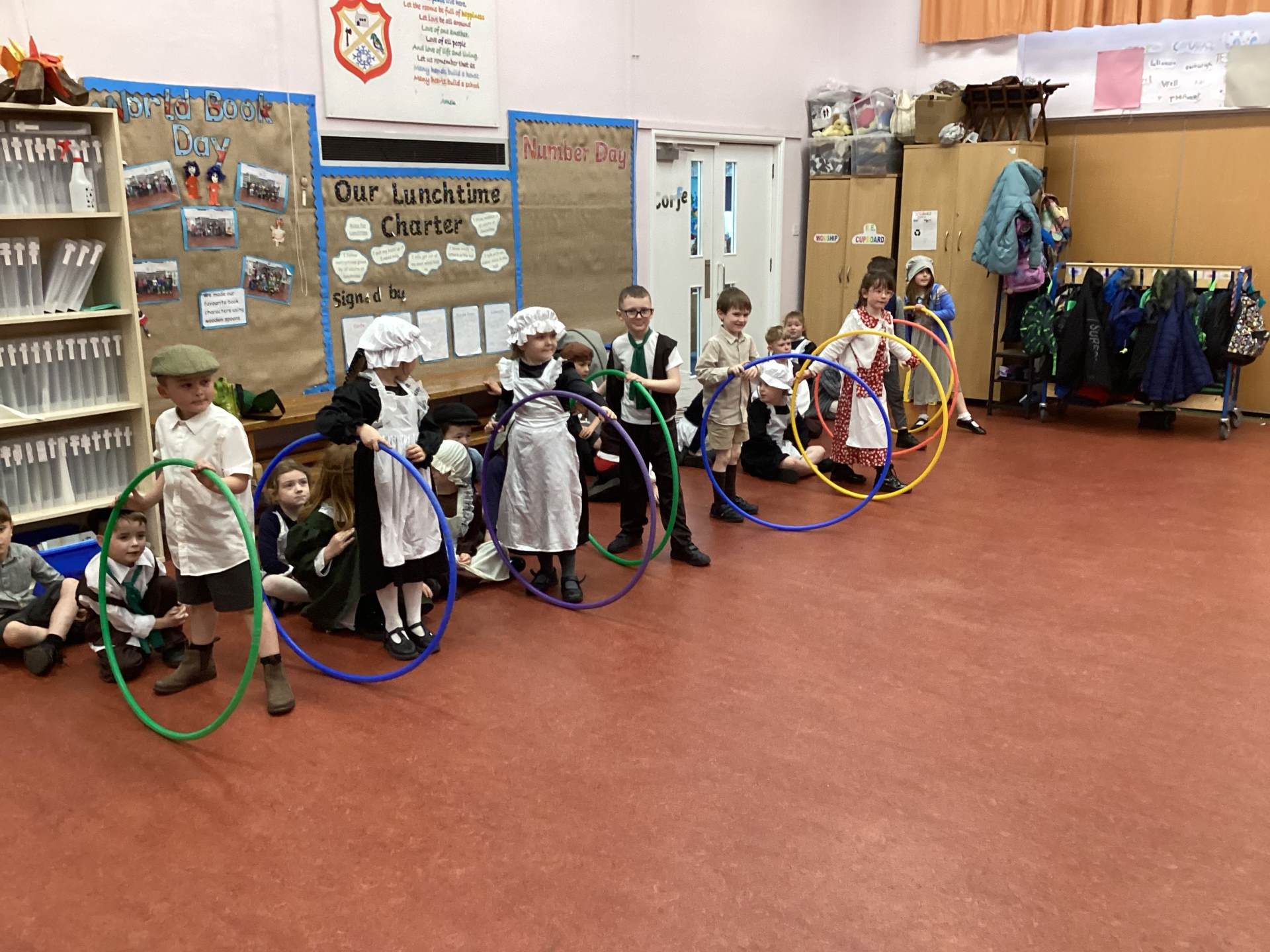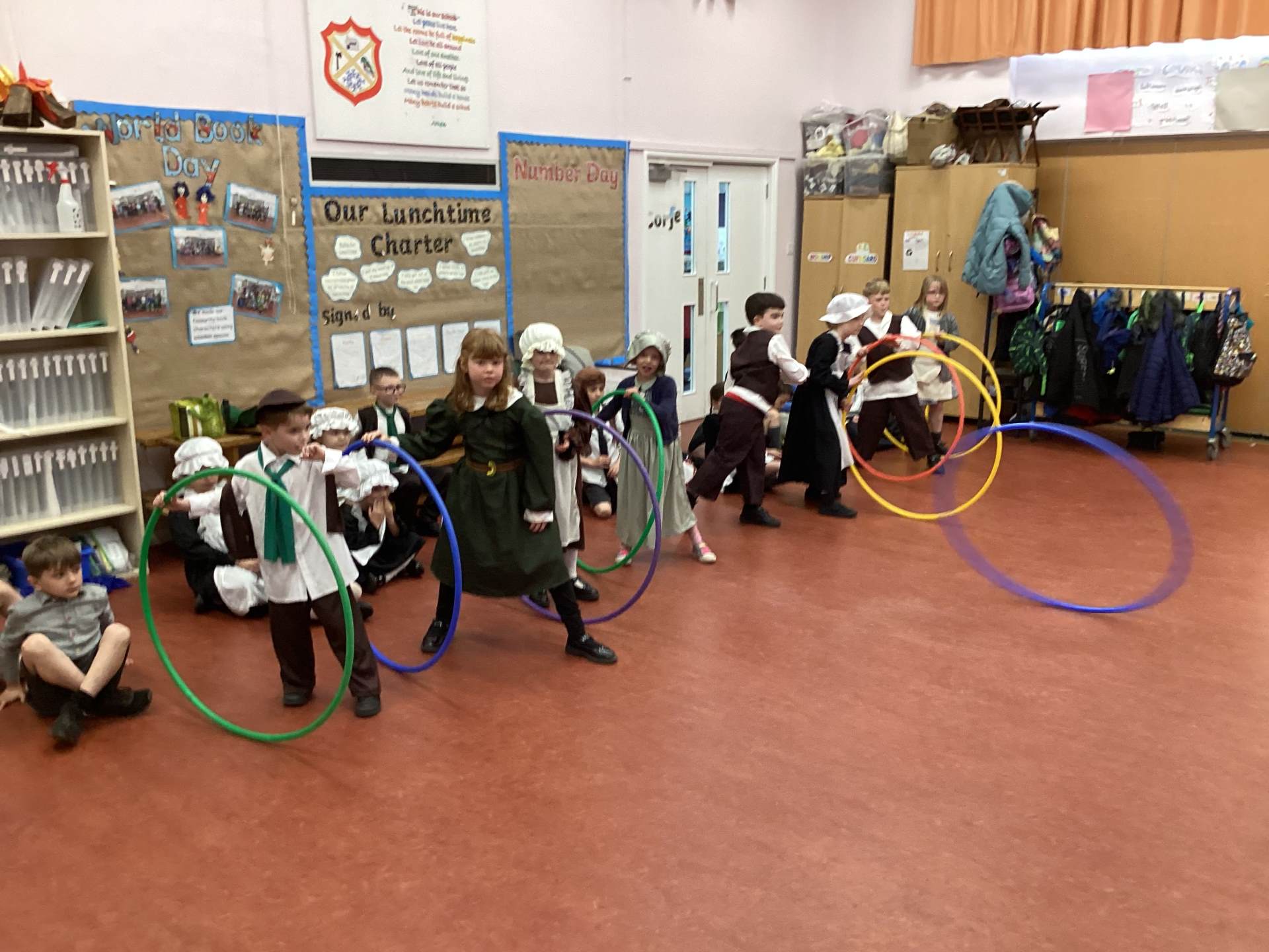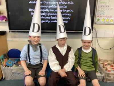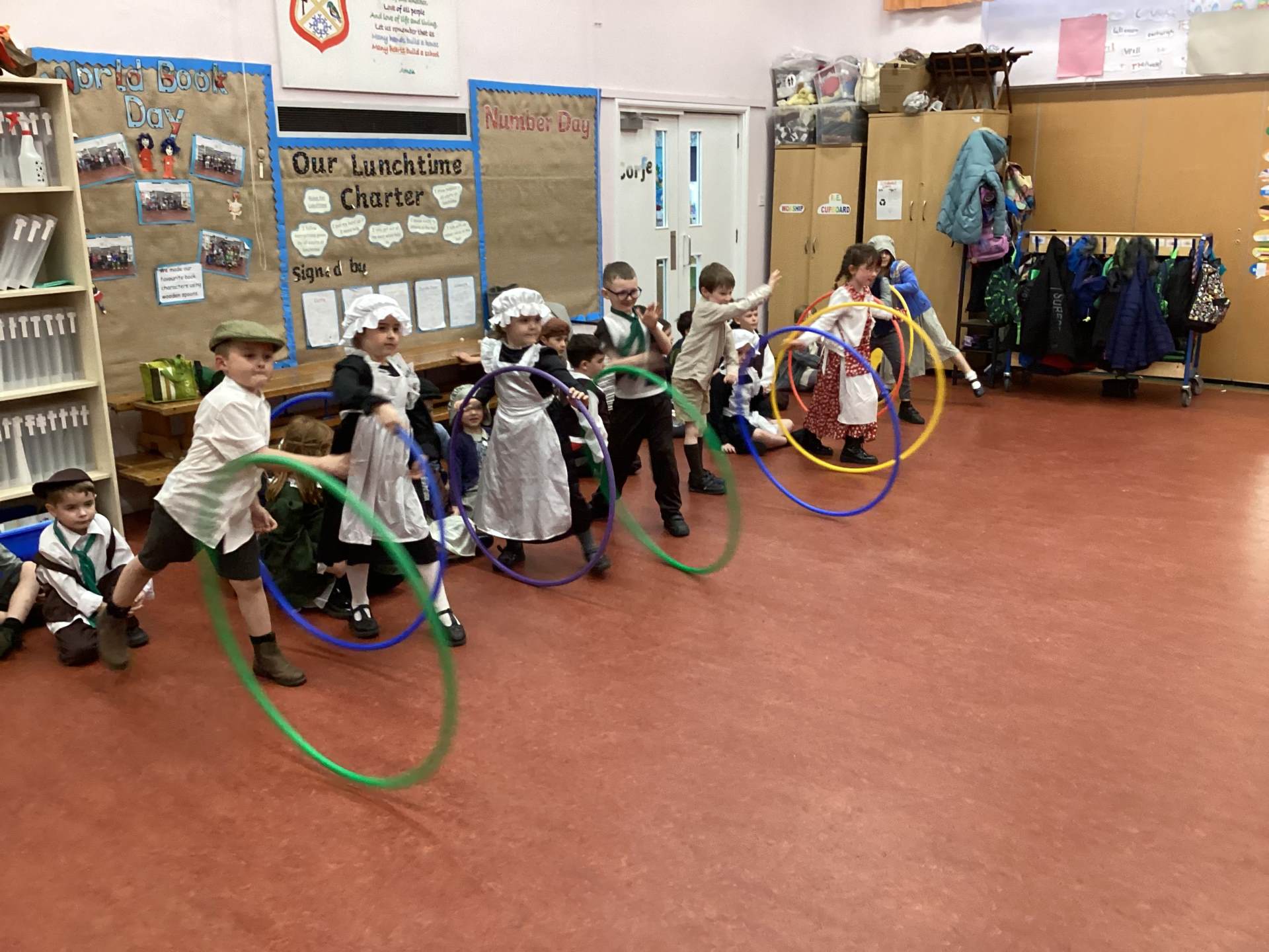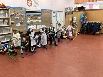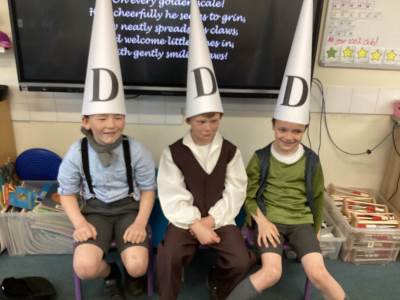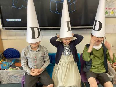 The afternoon brought even more excitement, as pupils enjoyed traditional Victorian games such as marbles and hoops. There was also some light-hearted discipline, with dunce hats being handed out—not only to the pupils but even worn by Mrs Simmons and Mrs Childs! This caused great laughter among the class and added a fun, memorable twist to the day.