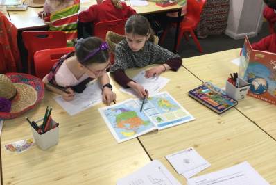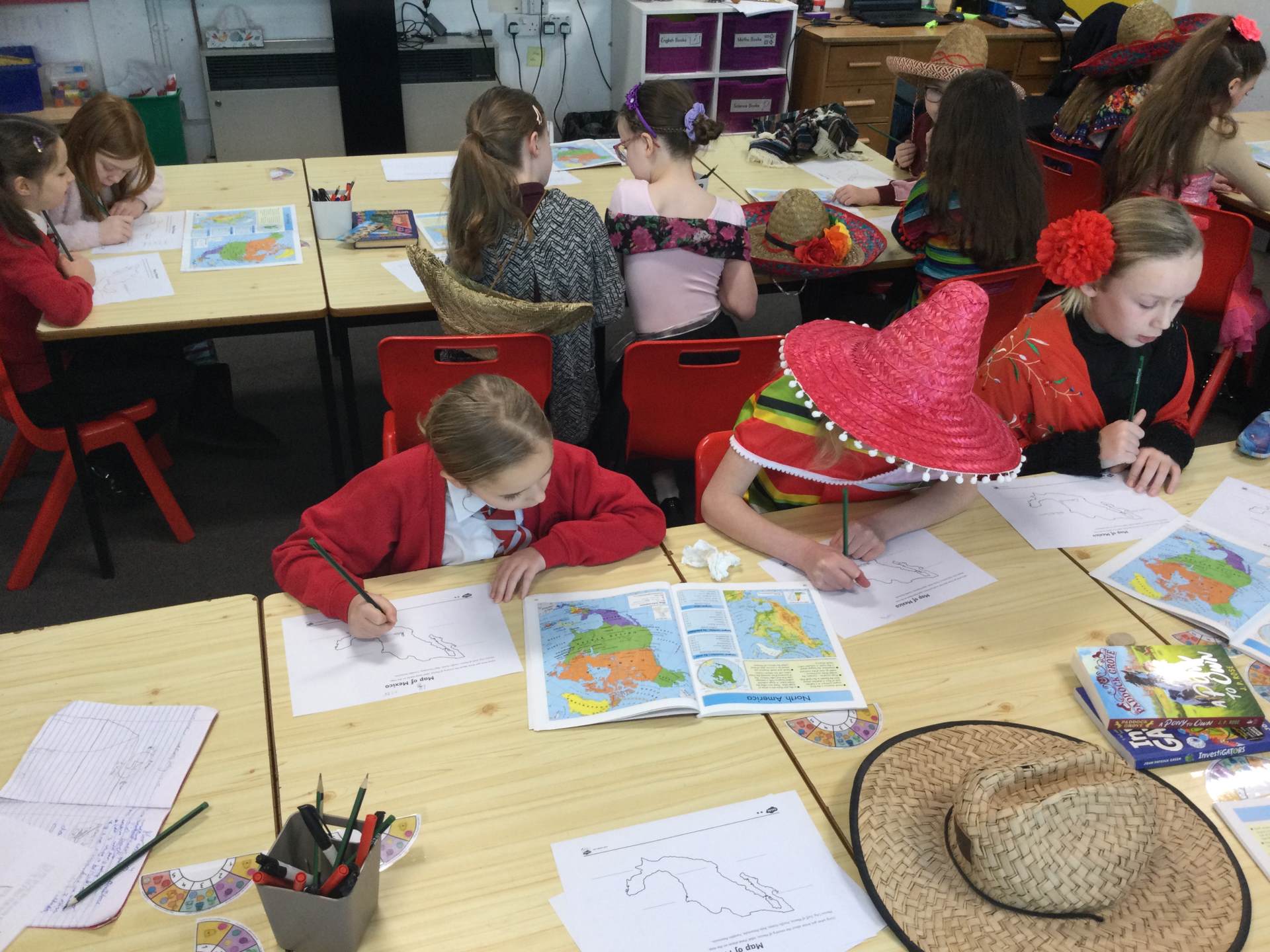 We started by using atlases to find Mexico, look at the countries and bodies of water around it. These were then plotted on a map along with Chitchen Itza, one of the more famous Mayan temples.