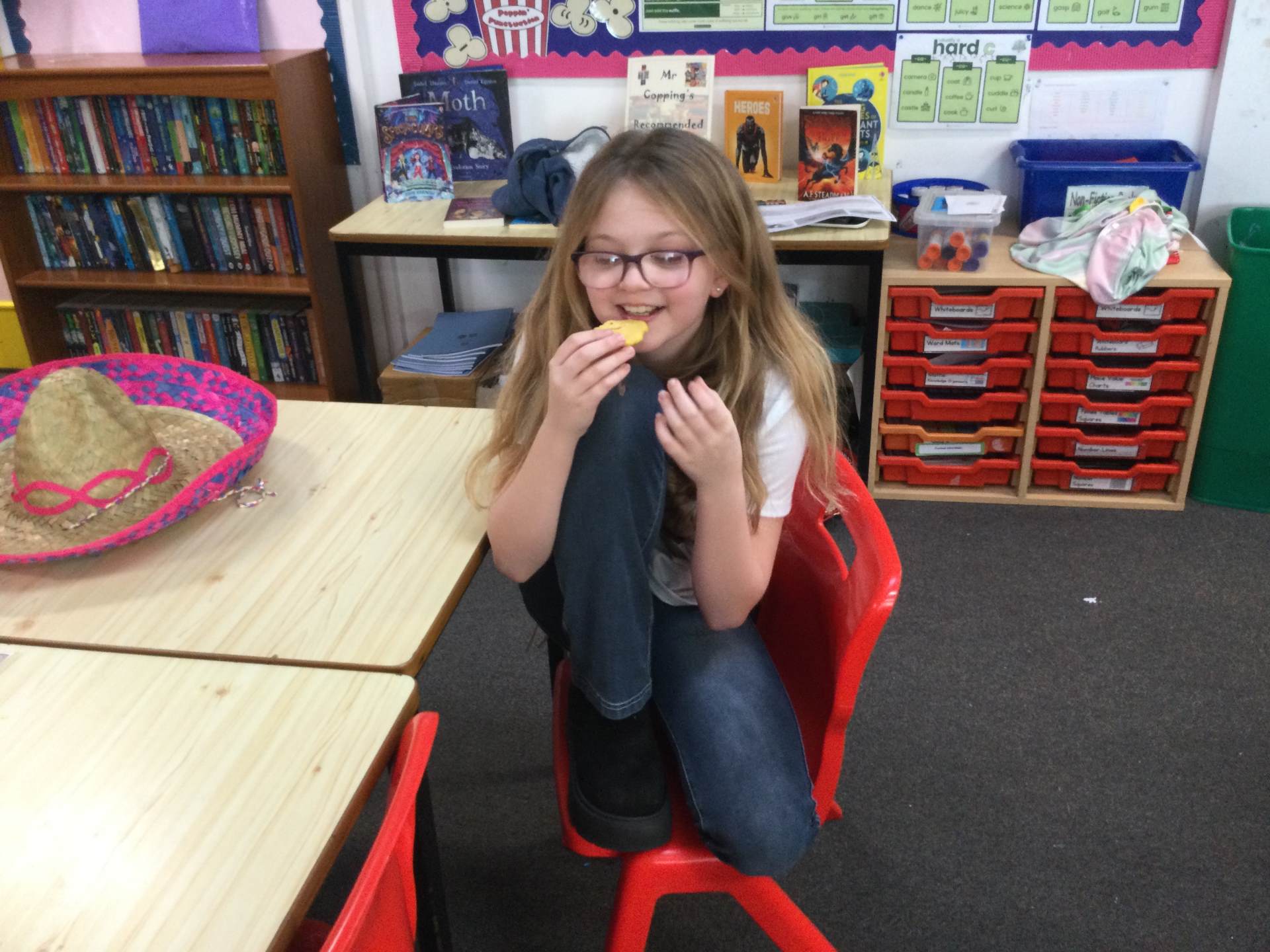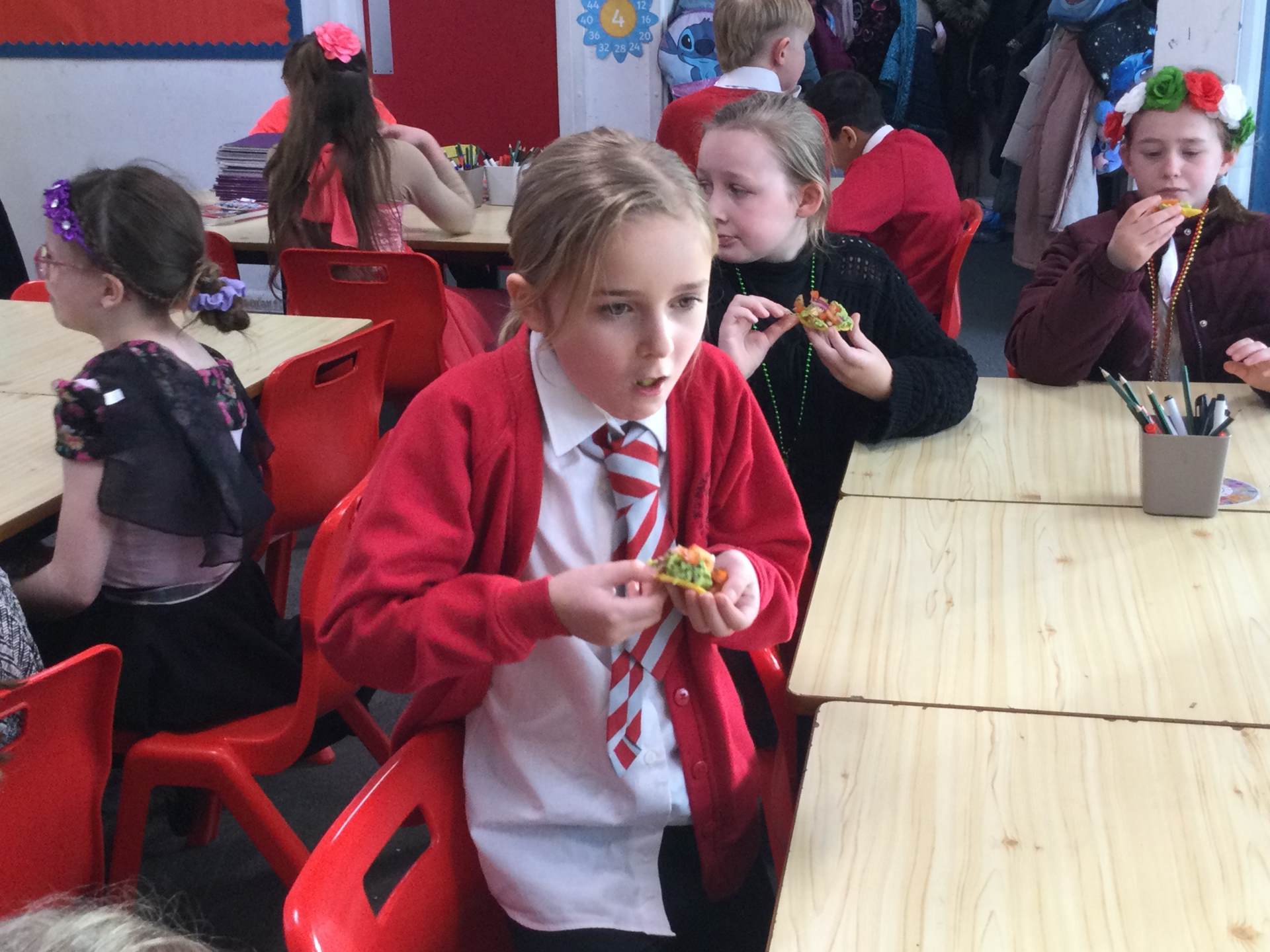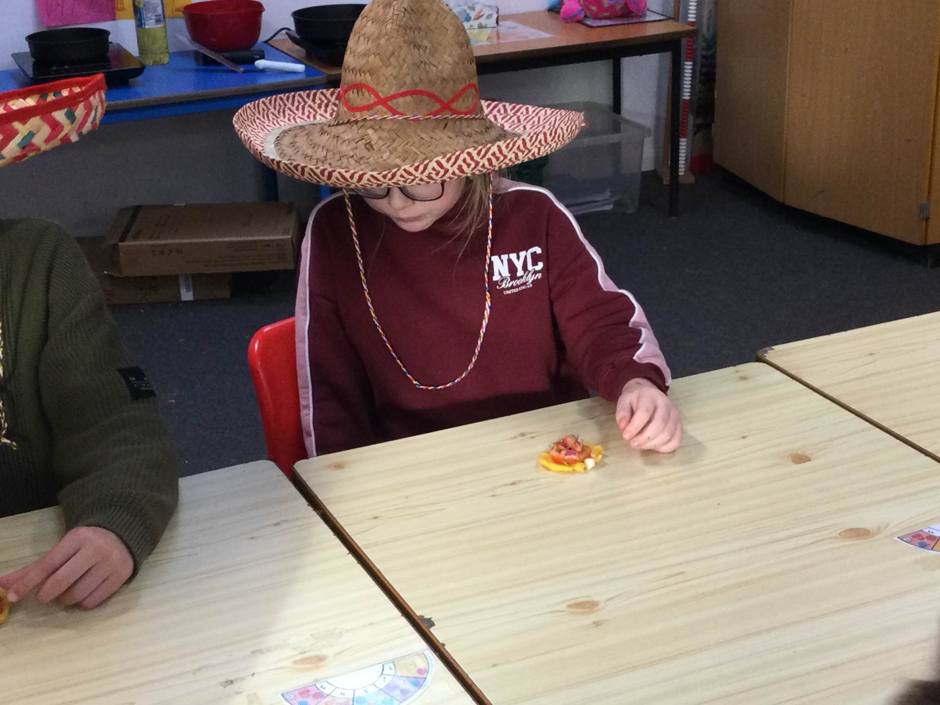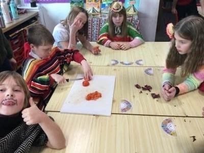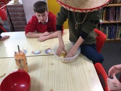 This afternoon we looked at the foods and diet of Mexico and made salsa, guacamole and their own tortillas. Everyone tried something. Some definitely liked it more than others.