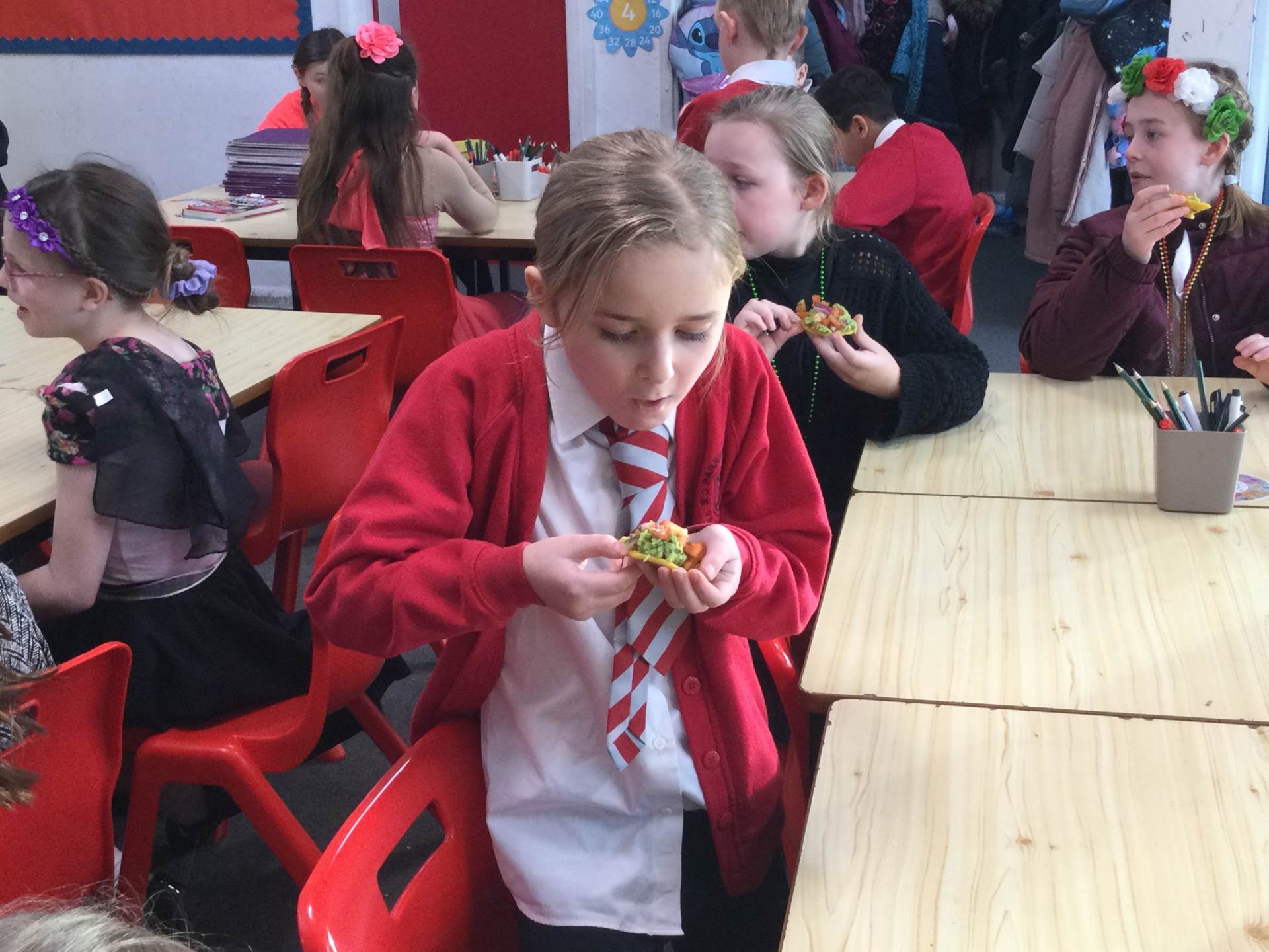This afternoon we looked at the foods and diet of Mexico and made salsa, guacamole and their own tortillas. Everyone tried something. Some definitely liked it more than others.