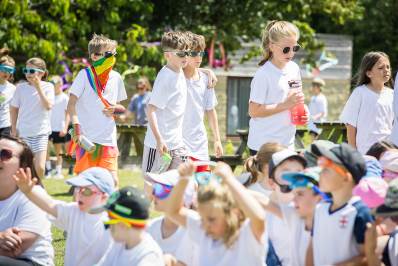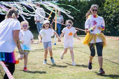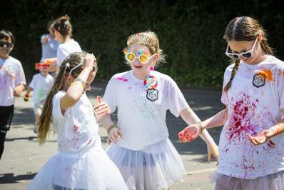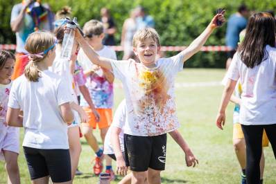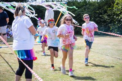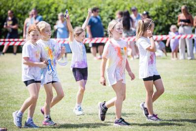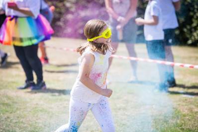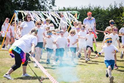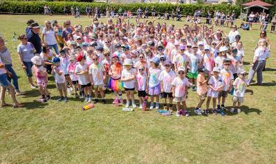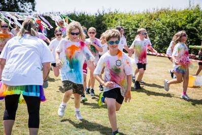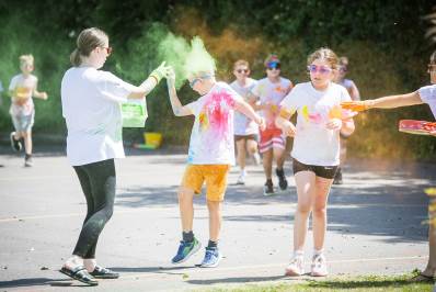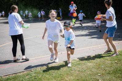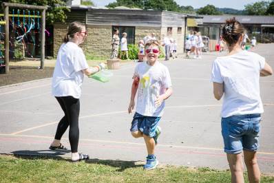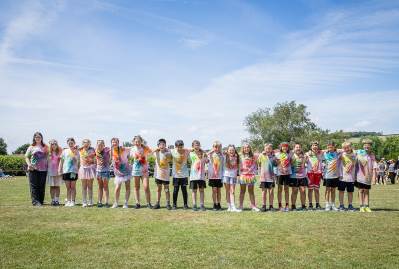 Pupils, staff, families and friends came together for a fantastic afternoon of fun and fitness at the Parrett & Axe CE VA Primary School Colour Run.