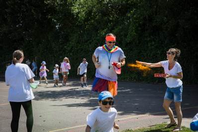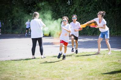 Children completed laps of the course while being showered with clouds of brightly coloured powder. The event was filled with energy, smiles and laughter as pupils encouraged one another and celebrated each lap with joy.